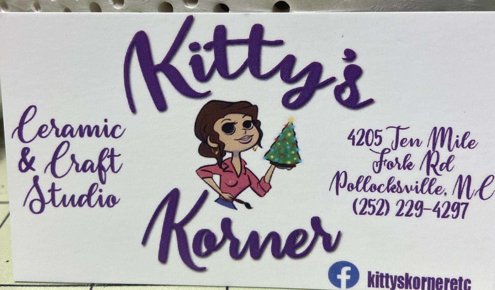 kittyskorneretc@gmail.com (252) 229-4297 check us out on Facebook and Instagram. tic tok also @kittysceramics